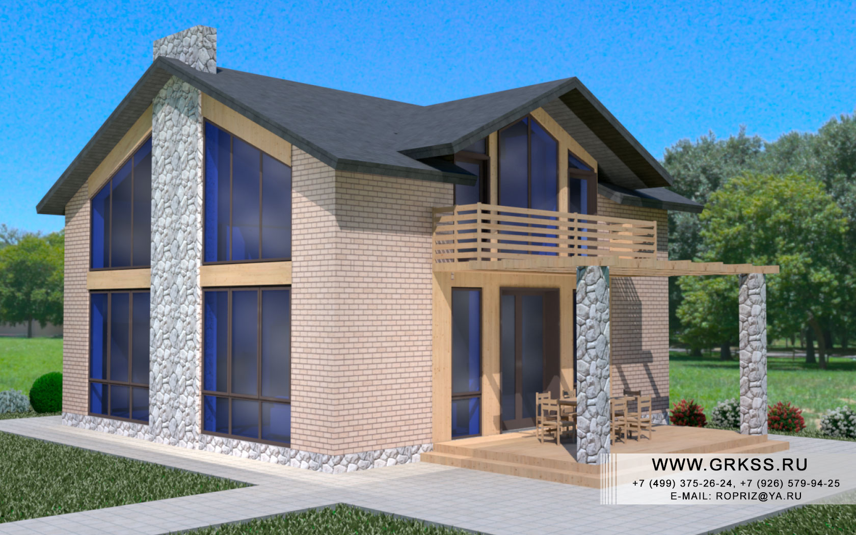 Описание: Проект "полуторно-этажного" дома под условным названием "Просторный". Интересный проект, имеющий большую общую площадь, четыре спальни, совмещенные зоны кухни и гостиной общей площадью 42 квадратных метра. Пример приведенного в проекте цветового решения остекления данного дома, в нашем случае синий оттенок окон, не оставит этот дом не замеченным на фоне остальных домов. Так же в проекте имеется балкон, устроенный под общей крышей представленного проекта и не маленькая по размеру терраса.