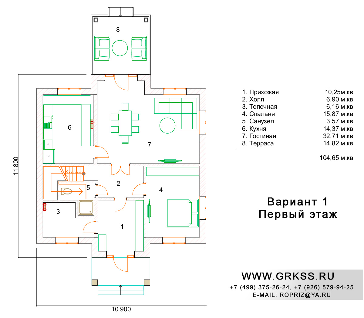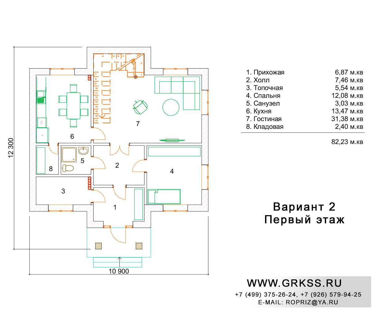Проект "полуторно-этажного" дома с условным названием "Белуха". Данным проектом предусмотрены внушительные по размерам помещения кухни и гостиной, возможность устройства террасы и балкон. Предусмотренная на первом этаже комната, прекрасно подойдет для людей в "возрасте". В зависимости от условий и особенностей обстоятельств Заказчика, лестница на второй этаж дома предусмотрена проектом в различных частях дома. Предлагаемые варианты планировки не являются окончательными, подлежат корректировке, переносу и изменению в соответствии с Вашими пожеланиями и требованиями. Представленный вариант наружной отделки служит иллюстрацией наших возможностей в части исполнения фасада Вашего будущего дома, и так же не является окончательным.