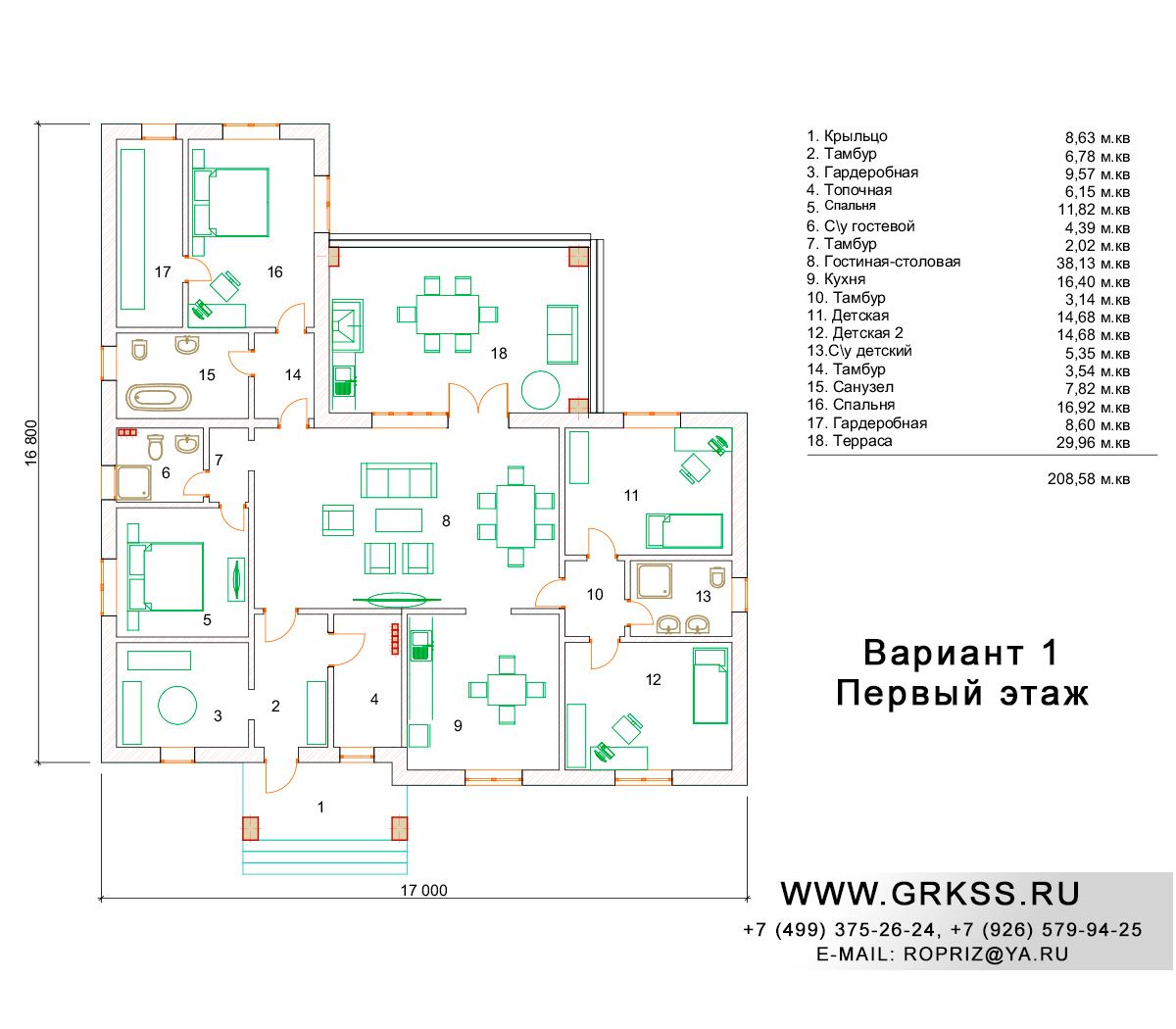 Вариант 1 S общ: 208м2