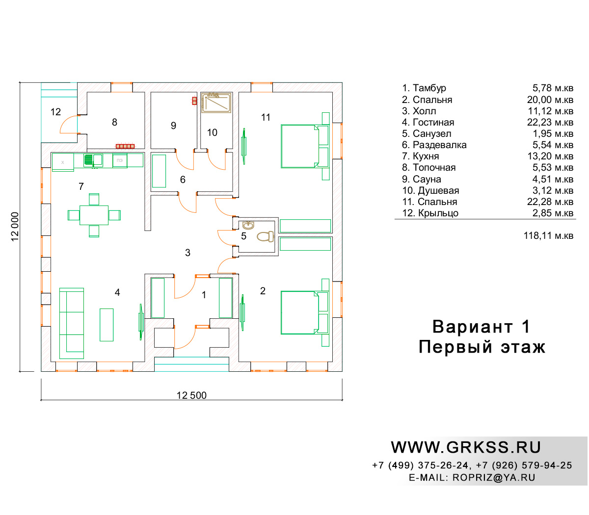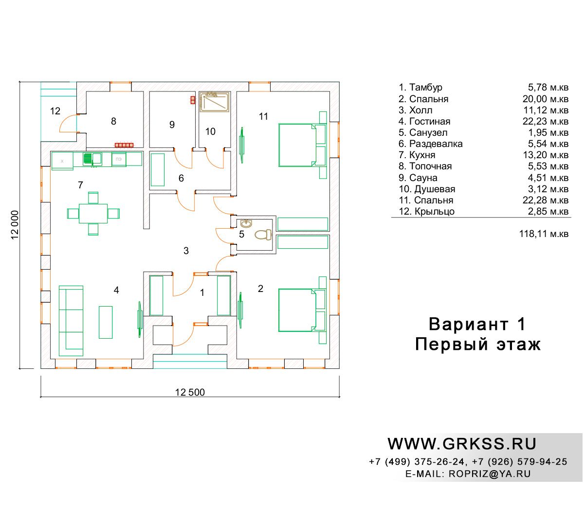Проект одно этажного дома с условным названием "Вейник". Проект одноэтажного дома из газобетона, с ярко выраженными двумя зонами. Одна зона это кухня гостиная, вторая - это зона спален, на две комнаты. Разделение жилого пространства таким образом не доставит дискомфорта обитателям данного дома во время отдыха и бодрствования. Планировка дома, подойдет для проживания не большой семьи из трех человек. Данный проект идеально впишется в любой дачный участок.