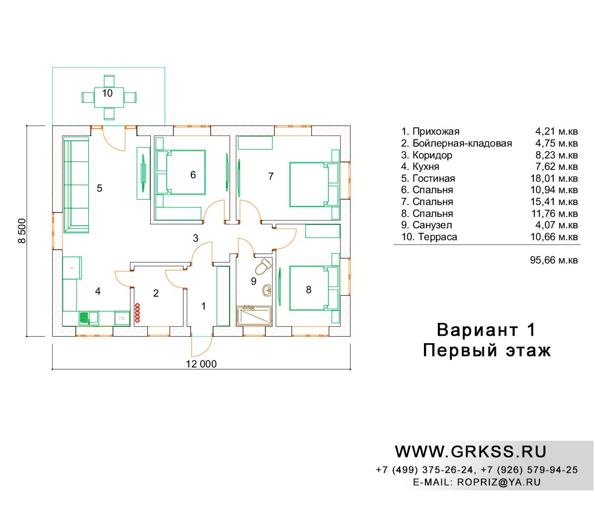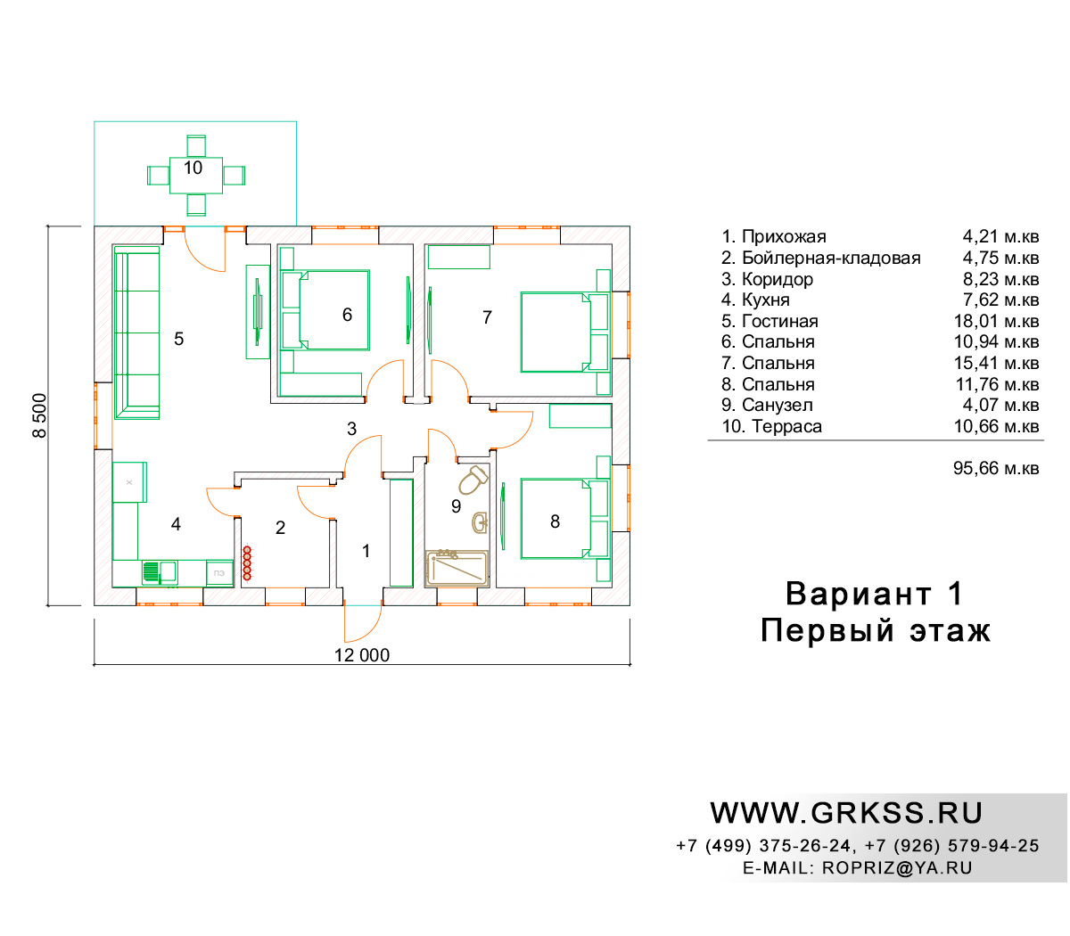 Вариант 1 S общ: 95м2