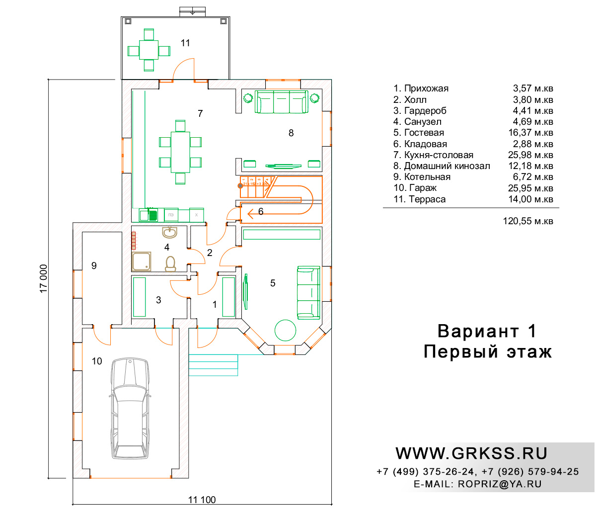 Проект "полуторно-этажного" дома с условным названием "Шерхан". Проект совмещает в себе гараж и полноценный жилой дом. Гараж размером на одно машиноместо, общей площадью 25 метров квадратных. В данном конкретном случае, на проекте представлена имитация карнизных свесов крыши второго этажа с использованием декоративных деревянных консолей, по мнению авторов проекта, данное решение выделяет данный проект в числе прочих рассматриваемых проектов в подобной конфигурации. Данный проект возможно реализовать без гаража, в случае если Вам понравилась планировка представленного дома, мы готовы рассмотреть любые конфигурации, организации внутреннего пространства, в зависимости от Ваших желаний.