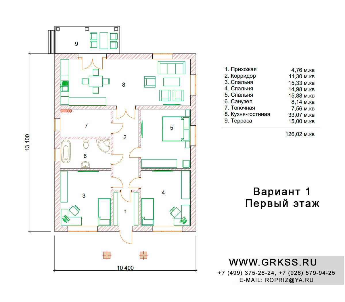 Вариант 2 S общ: 126м2