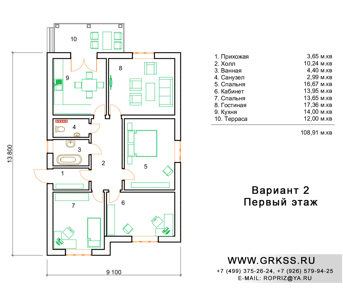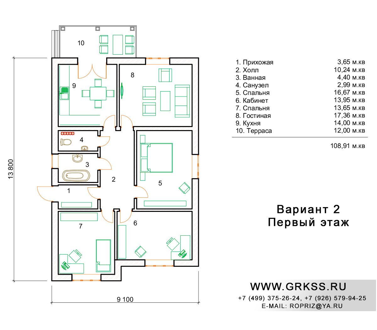 Вариант 2 S общ: 108м2