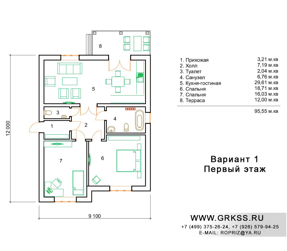 Вариант 1 S общ: 95м2