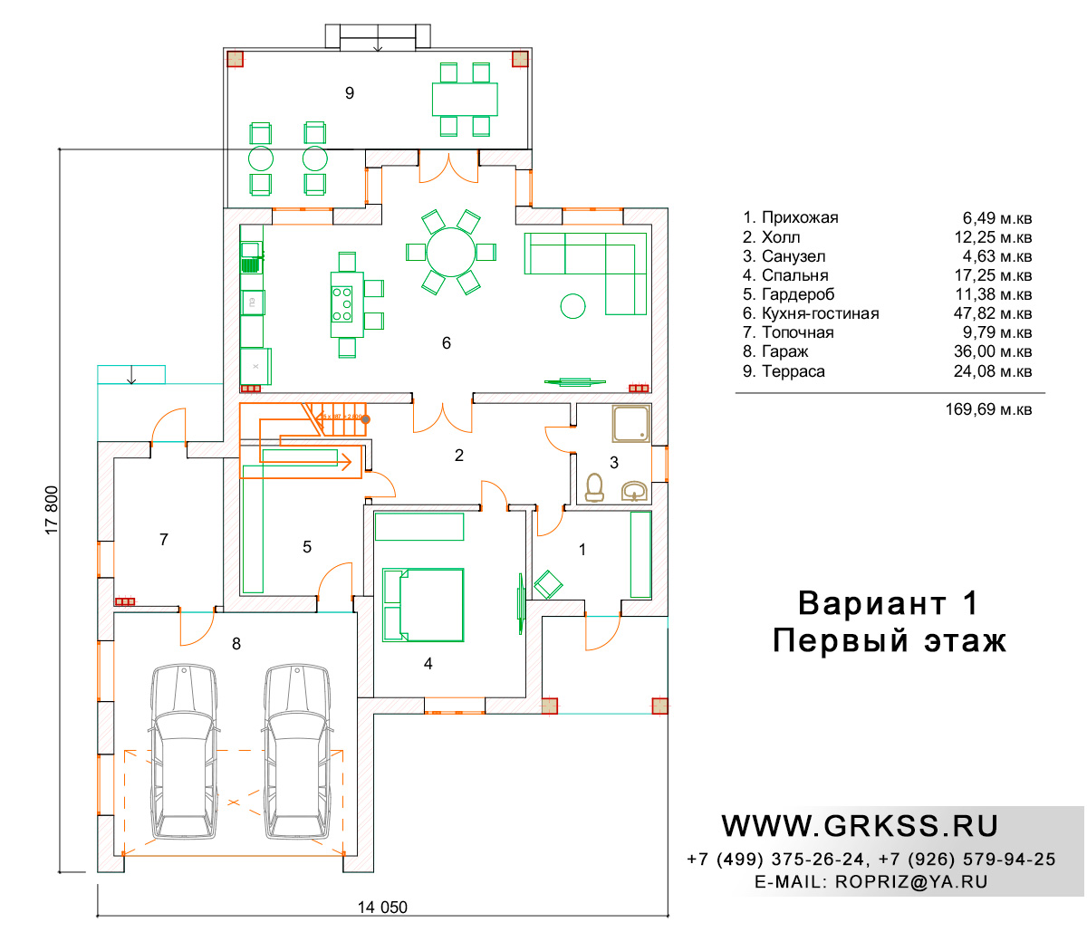 Проект двух этажного дома с условным названием "Благодать". Прекрасный, просторный двух этажный дом, общей площадью 265 метров квадратных. При реализации данного проекта, в представленном виде, Заказчик получает, в купе с домом достаточный для парковки двух автомобилей полноценный гараж, общей площадью 36 метров квадратных. Учитывая расчетную площадь гаража, возможно его использование как мастерской, для реализации каких либо слесарных навыков хозяев дома. Пять спальных комнат, терраса, совмещенные в одно пространство кухня и гостиная, удовлетворят всем запросам , во всех житейских ситуациях.