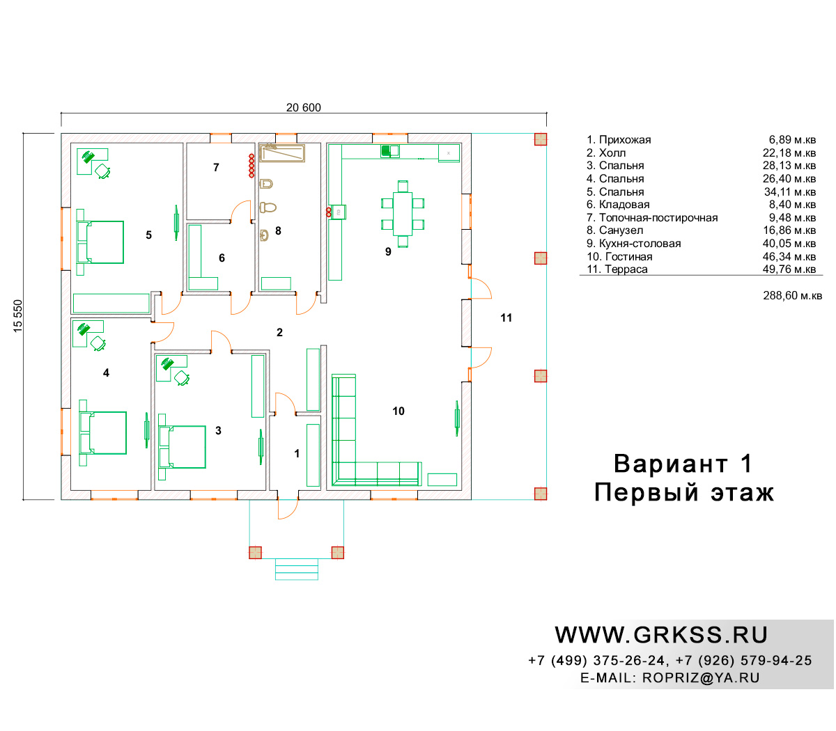 Проект одно этажного дома с условным названием "Вепрь". Очередная вариация одно этажного дома. "Классика" если можно так выразится, среди одно этажников. Не замысловатые цветовые решения внешней отделки, простота, практичность и как следствие надежность постройки. Каменный дом, в сочетании газобетона и облицовочного кирпича, придумать что то более долговечное - трудно, если конечно не говорить о монолитных строениях из железобетона. Три спальни, огромных размеров кухня, совмещенная со столовой ну и конечно же - терраса. Дом на все случаи жизни, простой, большой и надежный. Конечно же принимая решение в пользу того или иного проекта, без четкого понимания имеющихся возможностей и ресурсов обойтись не получится.
