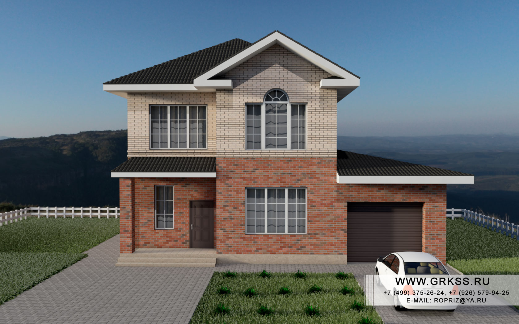 Описание: Проект двух этажного дома с условным названием "Воздушный". Двух этажный дом с четырьмя спальными комнатами и большим гаражом на две машины. Интересным решением в данном доме стало взаимопроникающее пространство кухни-гостиной и террасы, что делает это пространство - огромным, общая приведенная площадь в данном случае составит 57 метров квадратных. В случае устройства закрытой террасы, ее площадь может стать продолжением жизненного пространства самого дома, что в купе с ее остеклением приведет к эффекту единения с природой. Наличие комнаты на первом этаже дома, в полной мере смогут оценить подуставшие гости, либо пожилые члены семьи, которым не нужна "победа" над лестничными пролетами.