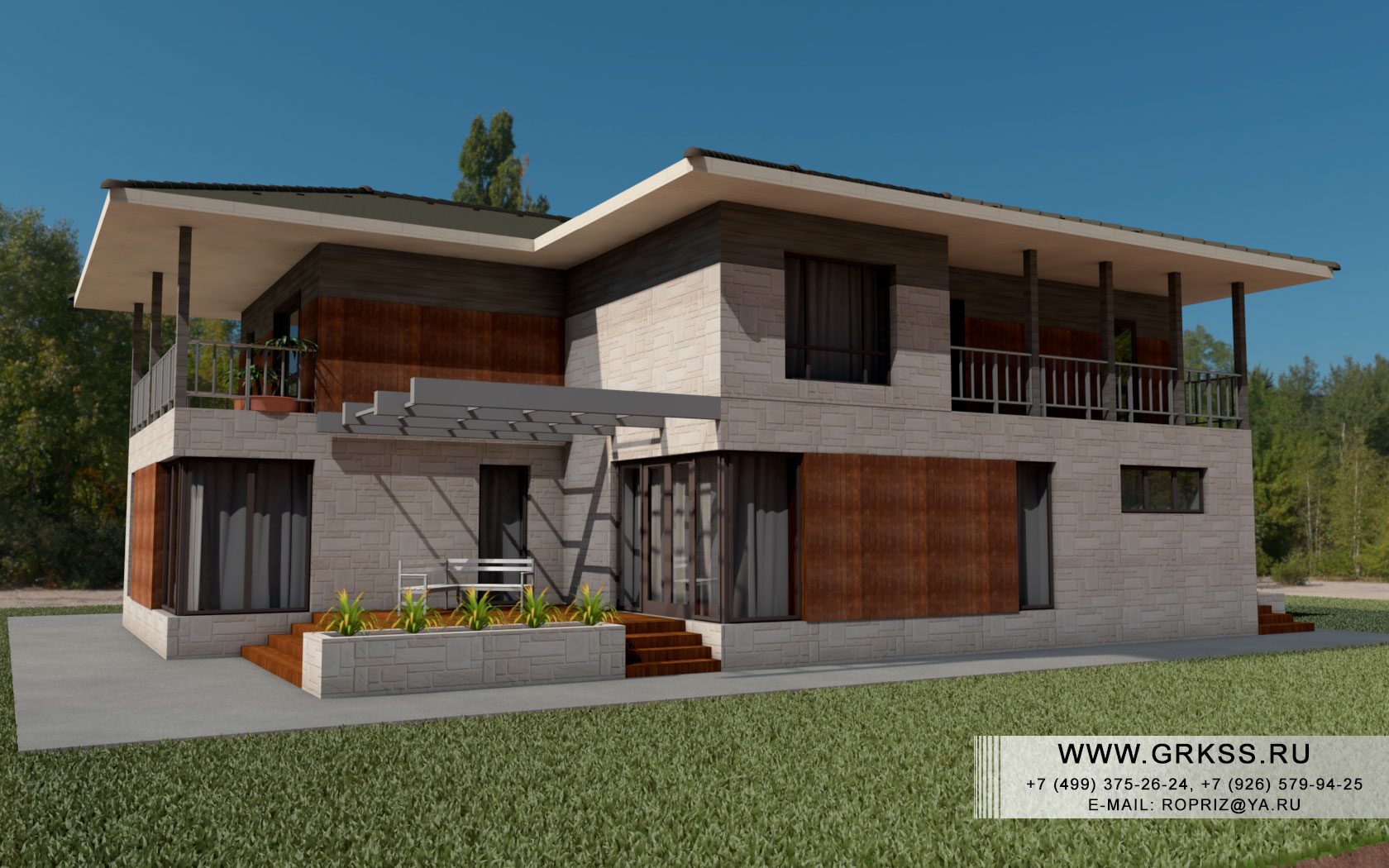 Описание: Проект двух этажного дома с условным названием "Пацифик". Необычный в плане внешнего дизайна, большой дом, в стиле "Хай-тек". Дом воплотил в себе все необходимое, для удобного, комфортного проживания. Пять спален, большую кухню, впечатляющих размеров гостиную, гараж, балкон и террасу. В проекте предусмотрено три санузла, достаточное количество помещений для хранения необходимых вещей и предметов, просторные коридоры и светлые комнаты.
