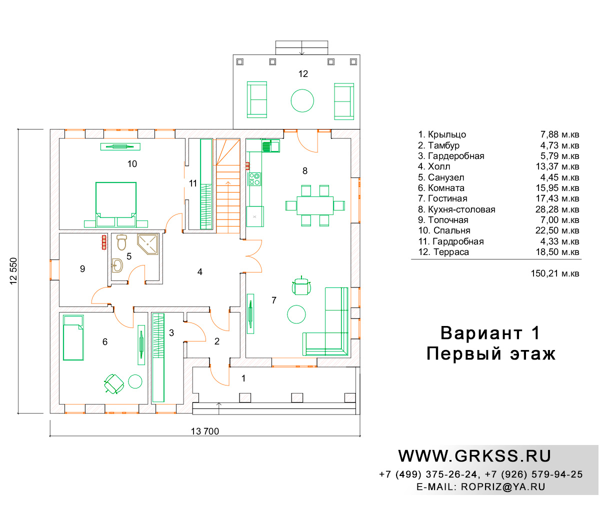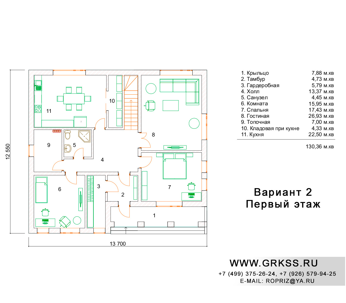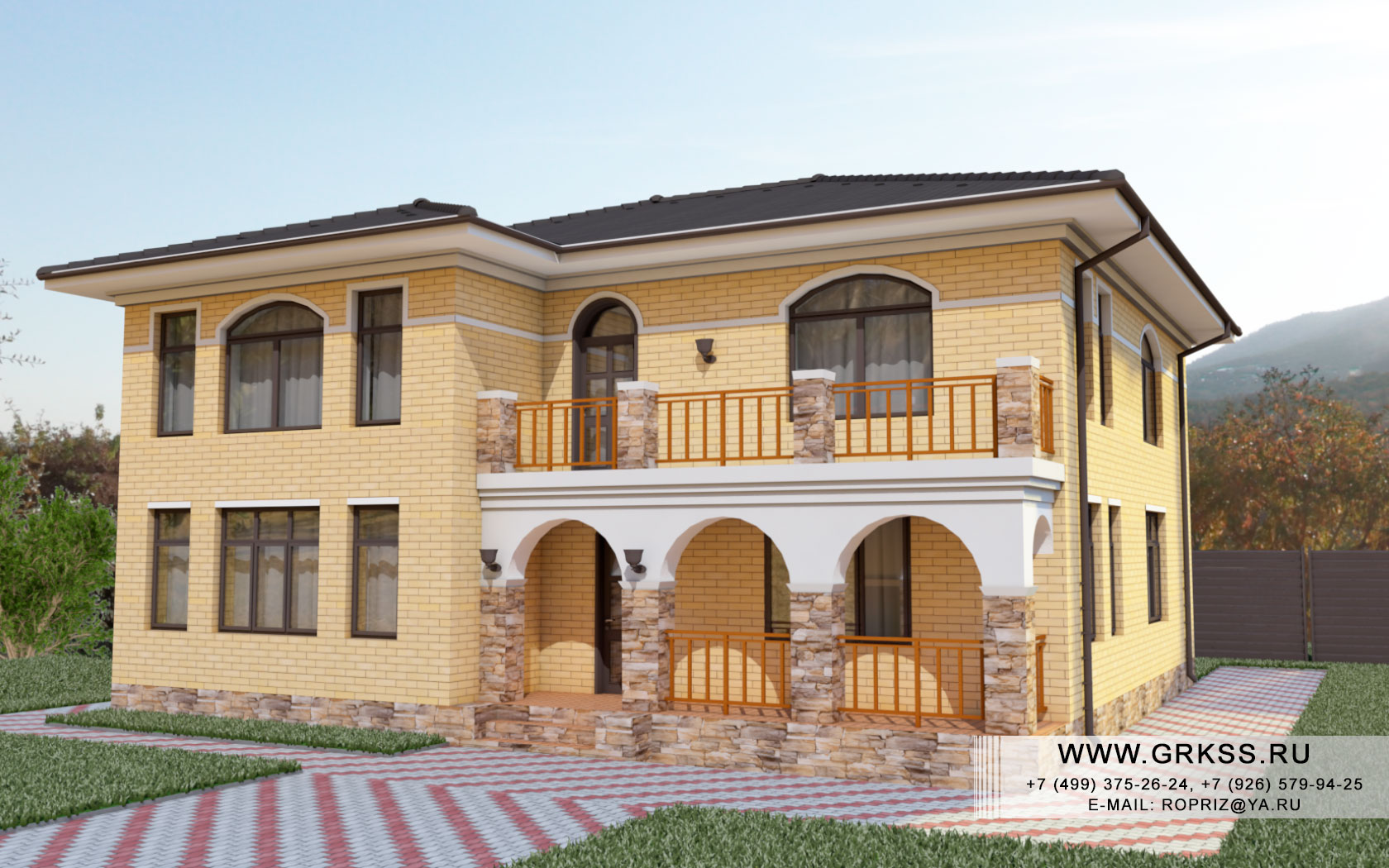 Проект двух этажного дома с условным названием "Регент". Не маленький по размеру дом, с шестью спальнями, представлен в двух возможных вариантах исполнения. В первом варианте объединены единым пространством кухня и гостиная, общая площадь этих помещений 45 метров квадратных. Огромное пространство, с возможностью выхода не террасу, в таких условиях с комфортом можно отпраздновать любой праздник или важное событие. Во втором варианте гостиная и кухня это отдельные помещения, размеры которых так же удовлетворят запросам самой большой семьи. Так же в зависимости от предпочтений Заказчика, проектом предусматривается устройство двух, либо трех санузлов. Продуманный, большой дом, в котором места - хватит всем.