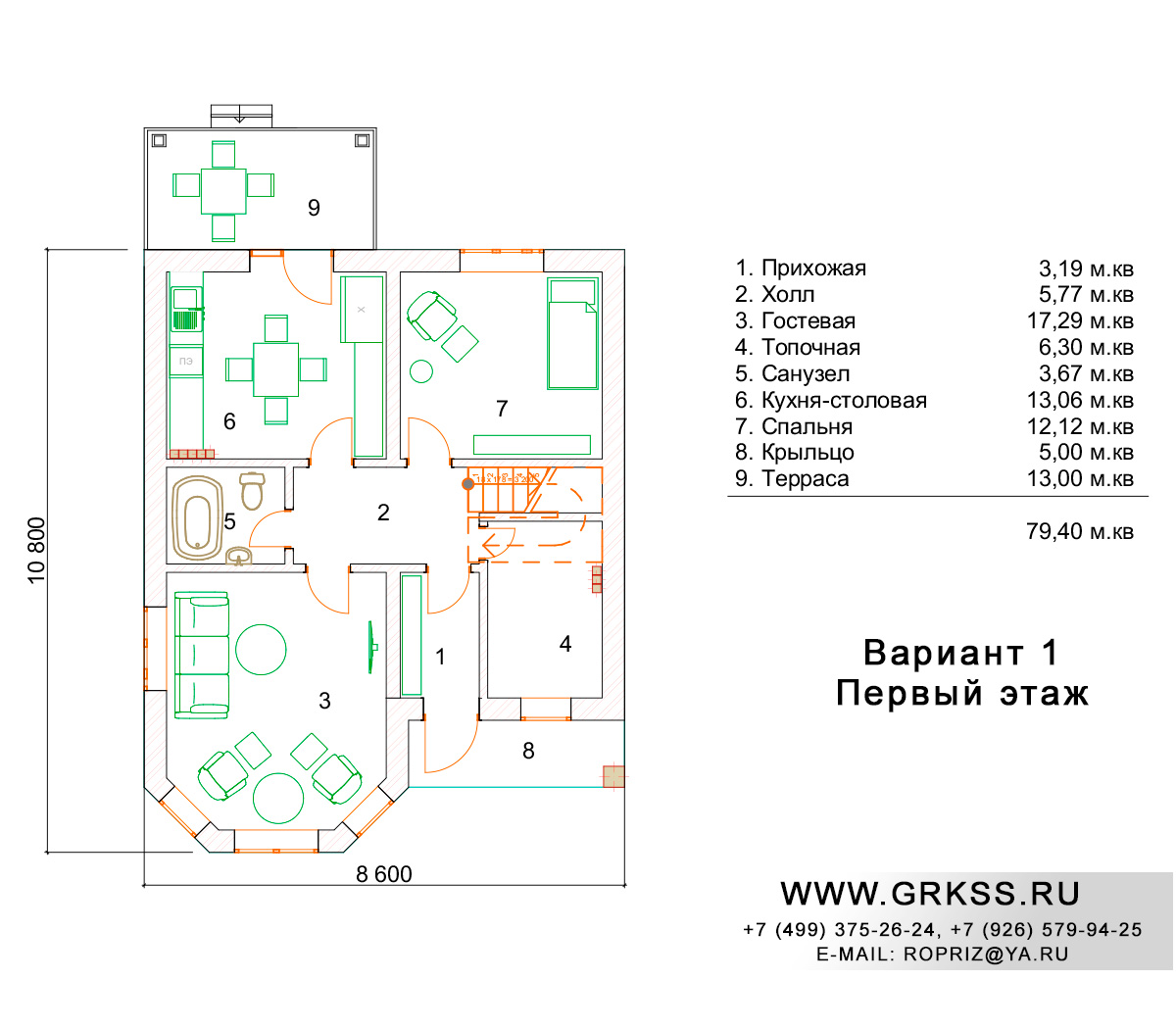 Проект дома "Гармония", реализует в себе полноценный двух этажный дом, имеет различные варианты планировки как первого так и второго этажа, в зависимости от пожеланий Заказчика. Возможен вариант планировки с совмещением зоны кухни и столовой, так же в зависимости от пожеланий Заказчика возможно устройство террасы. Проект имеет общую площадь 145 метров квадратных, в варианте с террасой, и 132 метра квадратных в варианте без террасы. Данный дом идеально впишется, как в городскую архитектуру, так и при устройстве его в дачном массиве или деревне.