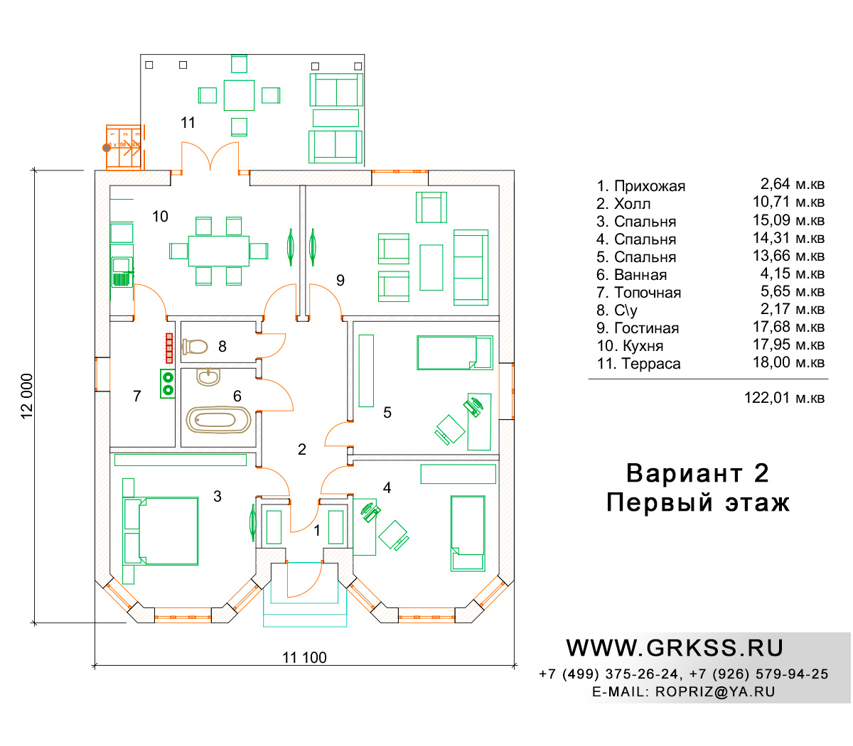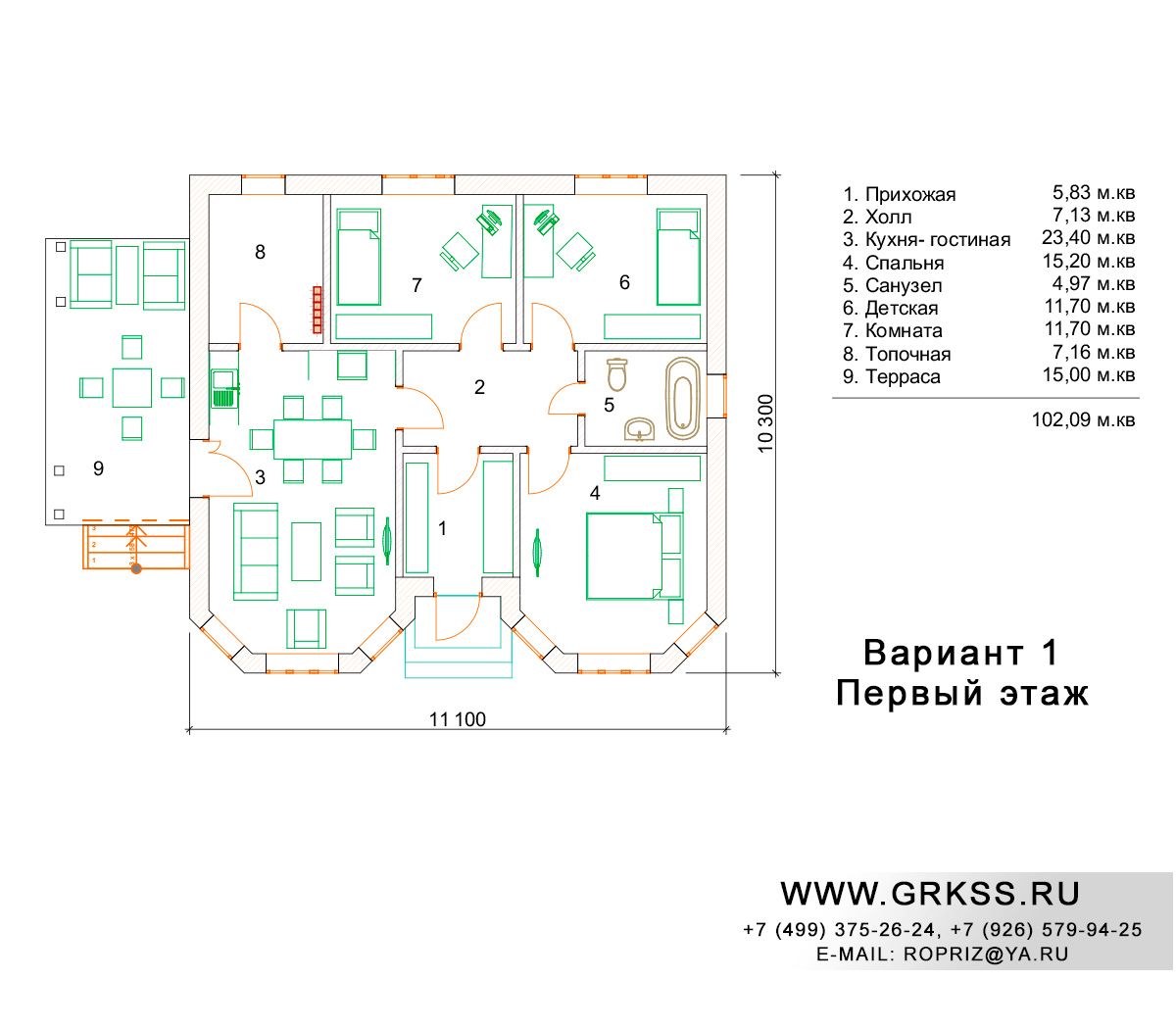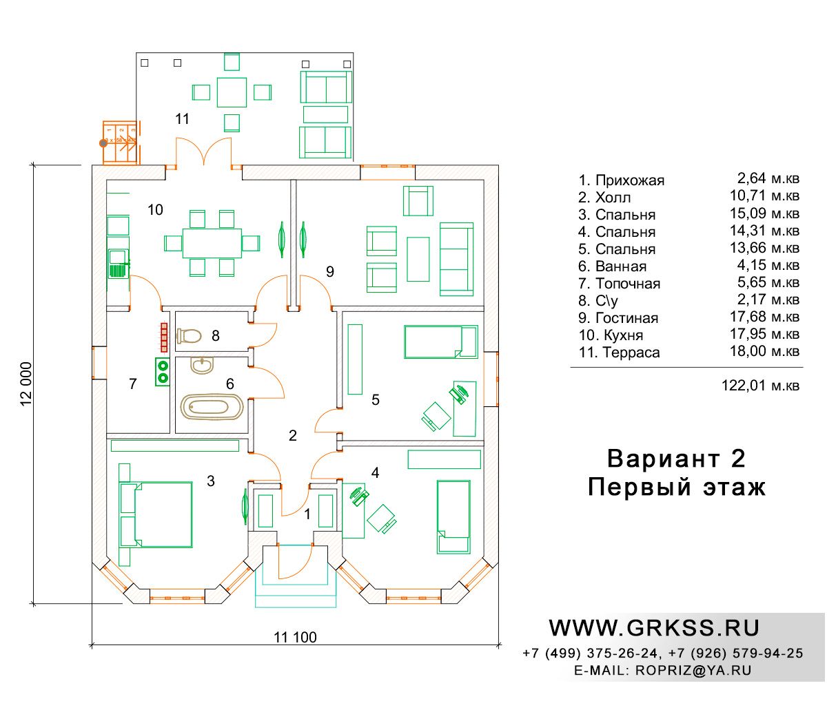 Очередная вариация одноэтажного дома под условным названием "Веста". Данный проект представлен в двух доступных для визуализации вариантах исполнения. В зависимости от особенностей участка, на котором возможно расположение данного дома, а так же пожеланий Заказчика, возможны варианты строительства данного дома вместе с террасой. При этом место расположения террасы так же являются темой обсуждения индивидуальных пожеланий Заказчика. Данный проект имеет три спальни, пригоден для круглогодичного проживания семьи из трех, четырех человек.
