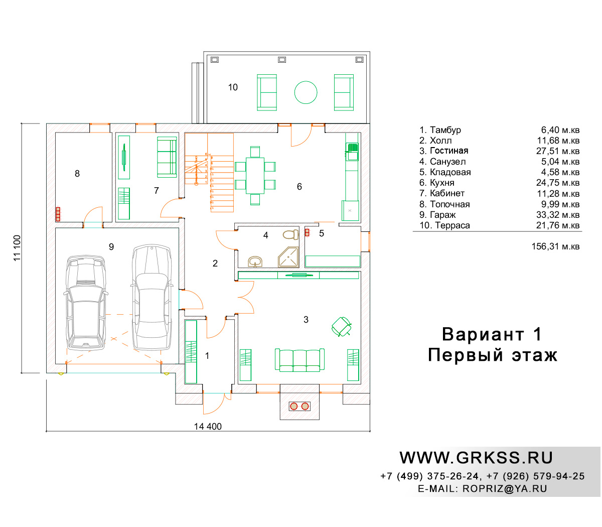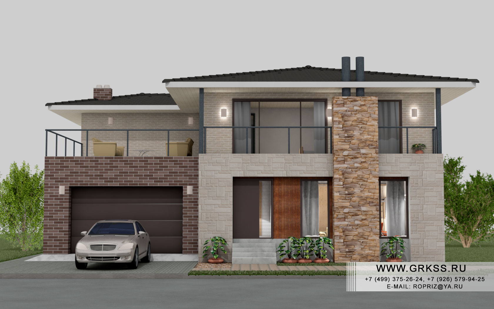 Описание: Проект двух этажного дома с условным названием "Гостеприимный". Современный, большой дом, общей площадью 298 метров квадратных. Так называемой "изюминкой" данного дома, по мимо его размеров, является его открытая терраса, расположившаяся на крыше гаража. Огромные окна предусмотренные проектом, делают данным дом, светлым и уютным. Материалы отделки, их расцветка, и комбинация могут использоваться любые, в зависимости от желаний Заказчика.